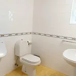 Die Villa in Albufeira verfügt über ein Badezimmer mit einer Badewanne, einer getrennten Toilette und einer Dusche. Es werden auch ein Haartrockner und Badelaken angeboten.